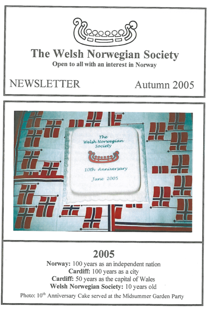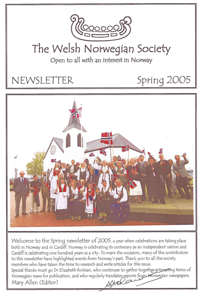 Although we are only a few months into 2004, I thought we should perhaps think ahead to 2005 for this issue of the Welsh Norwegian Society newsletter! Many WNS members will already know that Norway will be celebrating 100 years as a fully independent nation in 2005, but there will be other significant anniversaries in the same year, as the following letter from Ewart Parkinson explains.